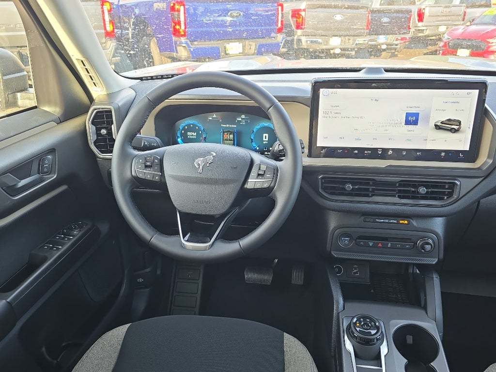 The rear parking assist technology on this Ford Bronco Sport will put you at ease when reversing. The system alerts you as you get closer to an obstruction. Start this mid-size suv from inside with remote start. This model keeps you comfortable with Auto Climate. An off-road package is equipped on the vehicle. This model features a hands-free Bluetooth® phone system. This mid-size suv offers Apple CarPlay for seamless connectivity. See what's behind you with the back up camera on the Ford Bronco Sport. This model has auto-adjust speed for safe following. This 2025 Ford Bronco Sport comes equipped with Android Auto for seamless smartphone integration on the road. This unit emanates grace with its stylish gray exterior. Maintaining a stable interior temperature in this Ford Bronco Sport is easy with the climate control system. This unit has a 3 Cyl, 1.5L high output engine. When you encounter slick or muddy roads, you can engage the four wheel drive on this mid-size suv and drive with confidence.