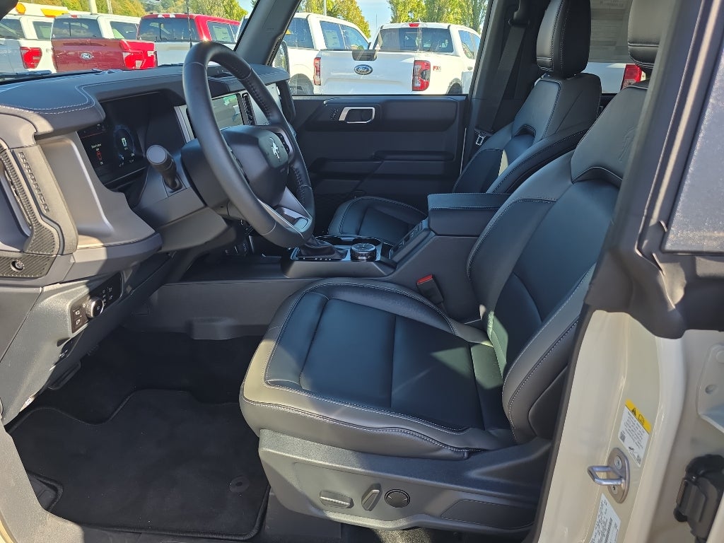 An off-road package is equipped on this model. This unit comes equipped with Android Auto for seamless smartphone integration on the road. The state of the art park assist system will guide you easily into any spot. See what's behind you with the back up camera on it. This Ford Bronco is pure luxury with a heated steering wheel. The installed navigation system will keep you on the right path. This model offers Apple CarPlay for seamless connectivity. This unit features a hands-free Bluetooth® phone system. This Ford Bronco has auto-adjust speed for safe following. The leather seats in it are a must for buyers looking for comfort, durability, and style. Start the vehicle from inside with remote start. This 1/2 ton suv warns of approaching vehicles with Cross-Traffic Alert. When you encounter slick or muddy roads, you can engage the four wheel drive on the Ford Bronco and drive with confidence.