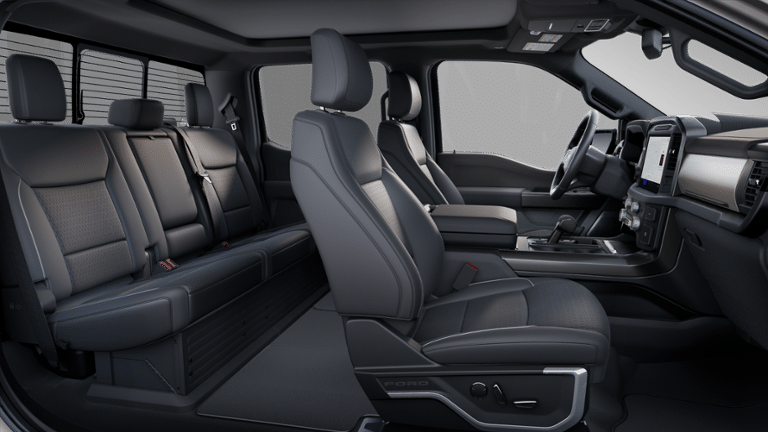 Lariat Black Appearance Package: Black Grille; ActiveX Trimmed Bucket Seats; Black Exterior Badging; Gray Box Side Decal; Body-Color Front and Rear Bumpers; Body-Color Skull Caps and Door Handles; Black Taillamp Bezels; Matte Black Tailgate F-150 Decal; Dark Interior Appliques. Bed Utility Package: 4 Pickup Box Tie-Down Plates; 6" Extended Running Boards; LED Box Lighting; Pro Access Tailgate; Power Tailgate. Equipment Group 502A High: Ambient Lighting - Ice Blue Color Only; B&O Unleashed Sound System by Bang & Olufsen Radio; 2nd Row Heated Seats; 6" Extended Angular Bright Anodized Step Bar; Power-Sliding Rear Window; Heads-Up Display; Illuminated Driver and Passenger Visors; 275/60R20 All-Terrain Tires. Mobile Office Package: Wireless Charging; Partitioned Lockable Rear Storage; Console Worksurface. Tow/haul Package: Integrated Trailer Brake Controller. Twin Panel Moonroof. Star White Metallic TC. Max Tow Electronic Locking W/3.73 Axle Ratio. SecuriCode Keyless-Entry Keypad. **Equipment listed is based on original vehicle build and subject to change. Please confirm the accuracy of the included equipment by calling the dealer prior to purchase.**