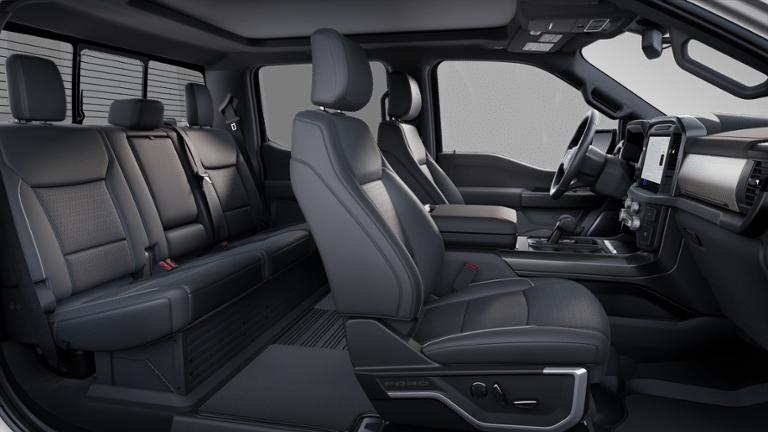 Lariat Black Appearance Package: Black Grille; ActiveX Trimmed Bucket Seats; Black Exterior Badging; Gray Box Side Decal; Body-Color Front and Rear Bumpers; Body-Color Skull Caps and Door Handles; Black Taillamp Bezels; Matte Black Tailgate F-150 Decal; Dark Interior Appliques. FX4 Off-Road Package: Tray Style Floor Liner Without Carpet Mats; Off-Road Tuned Front Shock Absorbers; Skid Plates; Monotube Rear Shocks; Rock Crawl Mode; 4x4 FX4 Off-Road Bodyside Decal; Hill Descent Control. Bed Utility Package: 4 Pickup Box Tie-Down Plates; 6" Extended Running Boards; LED Box Lighting; Pro Access Tailgate; Power Tailgate. Equipment Group 502A High: Ambient Lighting - Ice Blue Color Only; B&O Unleashed Sound System by Bang & Olufsen Radio; 2nd Row Heated Seats; 6" Extended Angular Bright Anodized Step Bar; Power-Sliding Rear Window; Heads-Up Display; Illuminated Driver and Passenger Visors; 275/60R20 All-Terrain Tires. Mobile Office Package: Wireless Charging; Partitioned Lockable Rear Storage; Console Worksurface. Tow/haul Package: Integrated Trailer Brake Controller. Twin Panel Moonroof. Max Tow Electronic Locking W/3.73 Axle Ratio. Space White Metallic. SecuriCode Keyless-Entry Keypad. Skid Plates. **Equipment listed is based on original vehicle build and subject to change. Please confirm the accuracy of the included equipment by calling the dealer prior to purchase.**
