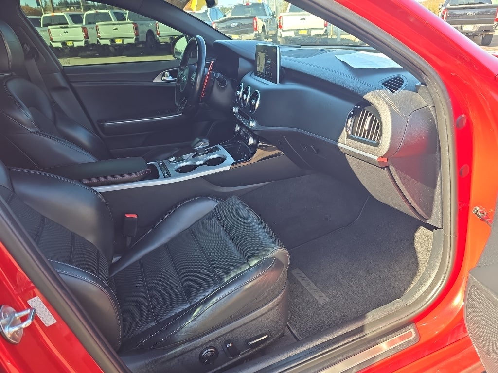 This unit has a clean AutoCheck report. The installed navigation system will keep you on the right path. This mid-size car keeps you comfortable with Auto Climate. The vehicle is equipped with the latest generation of XM/Sirius Radio. Apple CarPlay: Seamless smartphone integration for the vehicle - stay connected and entertained on the go! This unit features a hands-free Bluetooth® phone system. This unit is pure luxury with a heated steering wheel. See what's behind you with the back up camera on this vehicle. The state of the art park assist system will guide you easily into any spot. This model comes equipped with Android Auto for seamless smartphone integration on the road. The leather seats in this vehicle are a must for buyers looking for comfort, durability, and style. The Kia Stinger has a V6, 3.3L high output engine. It gleams with a flashy red exterior. Maintaining a stable interior temperature in this Kia Stinger is easy with the climate control system.