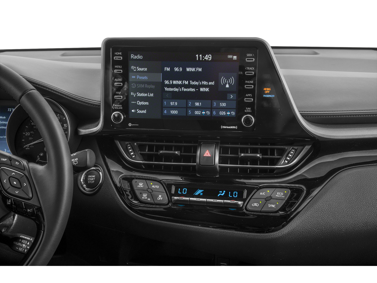 - Cruise control with steering wheel mounted controls