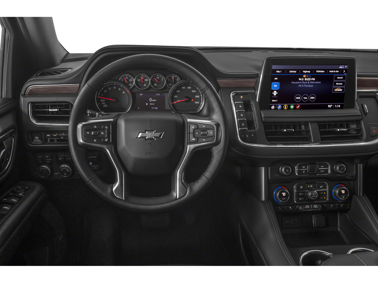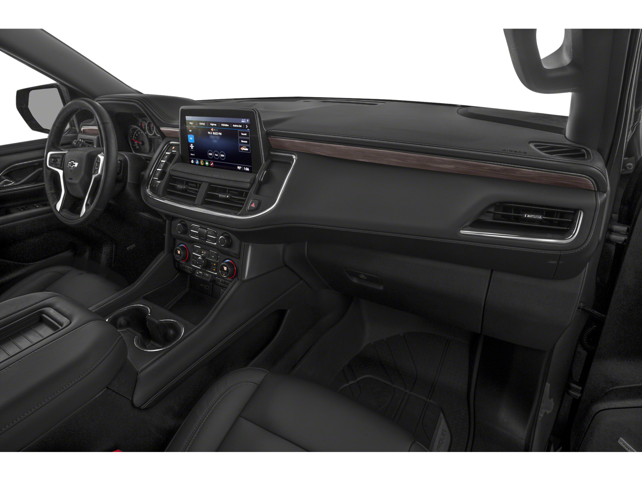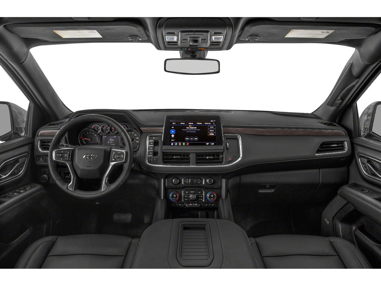 - 500 Lbs) GVWR; LED Daytime Running Lamps; Electronic 10-Speed Automatic Transmission with Overdrive; Driver and Front Outboard Passenger Airbags; Memory Settings For Driver; Premium Smooth Ride Suspension; Wireless Charging; Front High-Back Reclining Bucket Seats; Universal Home Remote; Colour-Keyed Carpeting Floor Covering; Front Skid Plate; Front High-Approach Angle Fascia; Hands-Free Rear Power Programmable Liftgate; Chevrolet Infotainment 3 Premium System Radio; Bose 9-Speaker Stereo Audio System Feature; 2-Speed Active Electronic Autotrac Transfer Case; 1st and 2nd Row Colour-Keyed Carpeted Floor Mats; Enhanced Driver Information Centre; Red Horizontal-Mounted Recovery Hooks; SiriusXM with 360L; Wrapped Steering Wheel; 275/60R20SL AT BW Tires; Auto-Dimming Inside Rearview Mirror