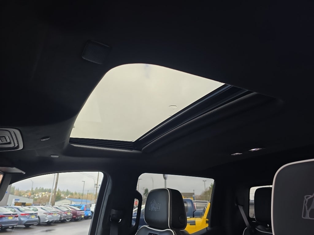 AT4X AEV Edition: 18" X 8.5" 12-Spoke High Gloss Black Aluminum Wheels; Rear Differential Skid Plate; AEV Tailgate Decal with Exterior Badging; Transfer Case Skid Plate; AEV Stamped-Steel Rear Bumper; AEV Branded Front Head Restraints; Front Skid Plate; Fuel Tank Skid Plate; Rocker Protection; 1st & 2nd Row AEV All-Weather Floor Liners (LPO); Gloss Black Door Handles. Preferred Equipment Group 4SG: Trailer Side Blind Zone Alert; Power Sliding Rear Window with Rear Defogger; Ultrasonic Front and Rear Park Assist; Trailer Camera Provisions; Electric Rear-Window Defogger; Theft Deterrent System (unauthorized Entry); Gloss Black Header with Dark Nickel Grille Insert Bars; Front Rain-Sensing Wipers; Heavy-Duty Air Filter; Skid Plates; 120-Volt Interior Power Outlet; Heated Driver and Front Outboard Passenger Seating; Wireless Charging; Front Premium Floor Liners with Removable Carpet Insert; Color-Keyed Carpeting Floor Covering; OnStar and GMC Connected Services Capable; Driver-Selectable Full-Locking Front Differential; Heated 2nd Row Outboard Seats; Off-Road Suspension; Power Front Passenger Windows with Express Up/down; Driver-Selectable Full-Locking Rear Differential; Power Rear Windows with Express Down; Integrated Trailer Brake Controller; HD Surround Vision; Ventilated Driver and Front Passenger Seats; Power Rake and Telescoping Steering Column; Power Sunroof; Multicolor 15" Diagonal Head-Up Display; Keyless Open and Start; Bose Premium Series with 12- Speaker System; Perimeter Lighting; Push Button Start; LED Cargo Area Lighting; Remote Vehicle Starter System; In-Vehicle Trailering System App; Hill Descent Control; Floor-Mounted Center Console; MultiPro Tailgate Audio System by Kicker; Bed View Camera; Rear Cross Traffic Braking; Trailer Tire Pressure Monitor System; GMC Pro Safety; Trailering Package; 2 USB Ports; 2 Charge/data USB Ports Inside Center Console; Steering Wheel Audio Controls; 2 type-C Charge-Only Rear USB Ports; GMC Connected Access Capable; Universal Home Remote; 2-Speed Transfer Case; Deep-Tinted Glass; Spray-On Pickup Bedliner with AT4X Logo; SiriusXM with 360L; Hitch View; Power Front Windows with Driver Express Up/down; Rear Pedestrian Detection; Wi-Fi Hotspot Capable; Rear Wheelhouse Liners; Power Door Locks. REV Hard-Folding Tonneau Cover. Rocker Protection. Thunderstorm Gray. Rear Underseat Storage. GMC MultiPro Tailgate Step Lights. Cargo Tie-Downs (4). **Equipment listed is based on original vehicle build and subject to change. Please confirm the accuracy of the included equipment by calling the dealer prior to purchase.**